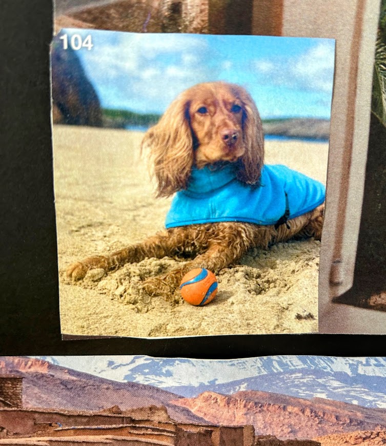 But first I must tell you about the gorgeous golden spaniel – the last image to remain a mystery on my current board. He sat there looking at me, inviting me to engage with him playfully (he ‘felt’ male) but I couldn’t for the life of me imagine how I might do that. We love dogs but we live in a ‘no pets’ zone while our irregular lifestyle also prohibits it.